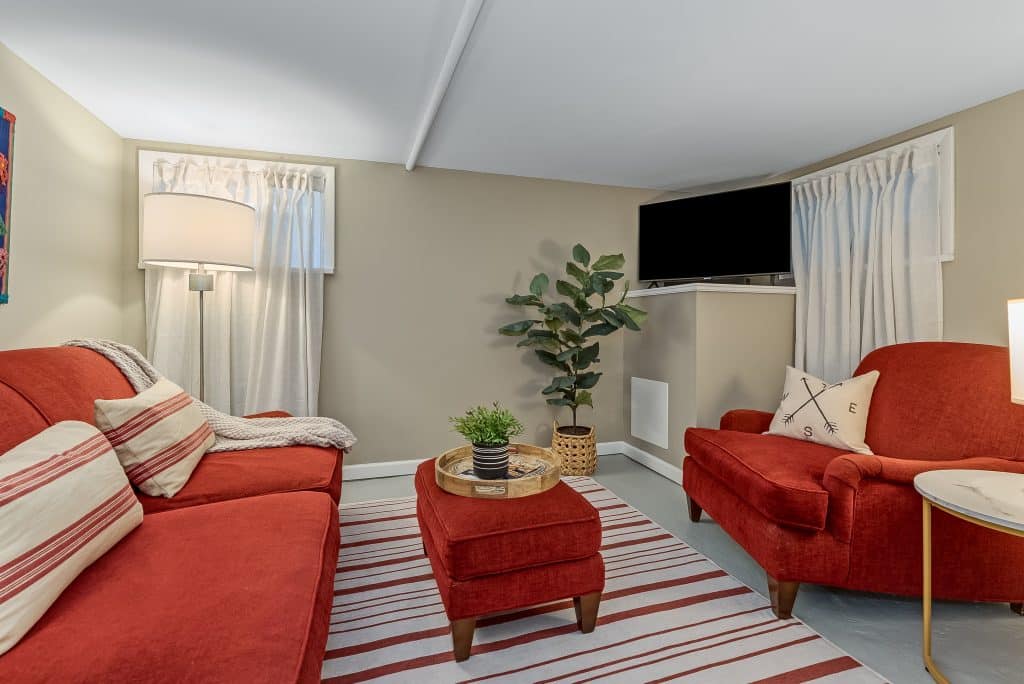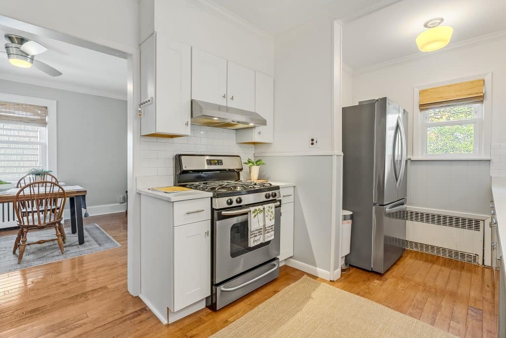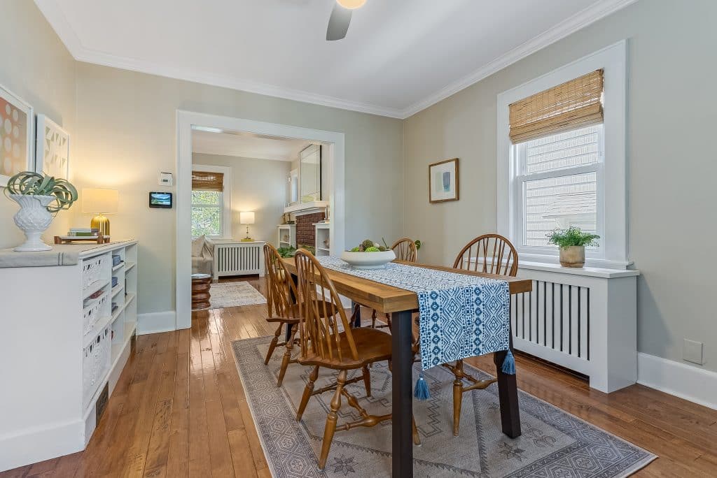 During our time here, we’ve made many improvements. We installed new hardwood floors on the first floor, renovated the second-floor bathroom and kitchen, and re-finished part of the basement to create additional living space. We’ve also updated essential systems including the furnace, water heater, and kitchen appliances. The custom radiator covers crafted by a local carpenter blend functionality with the home’s aesthetic.