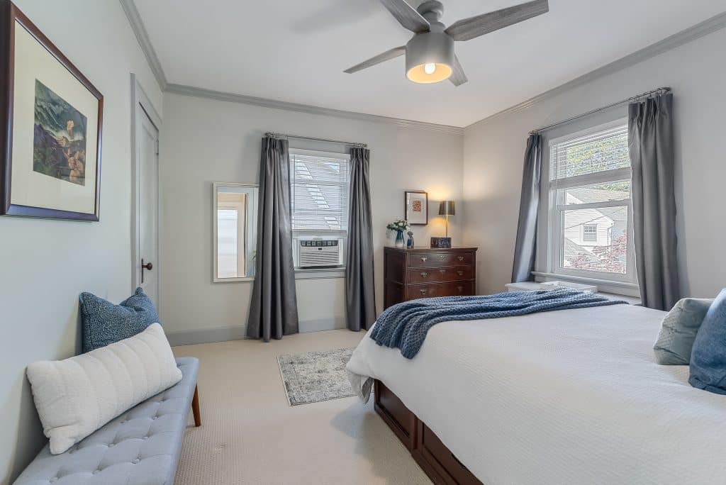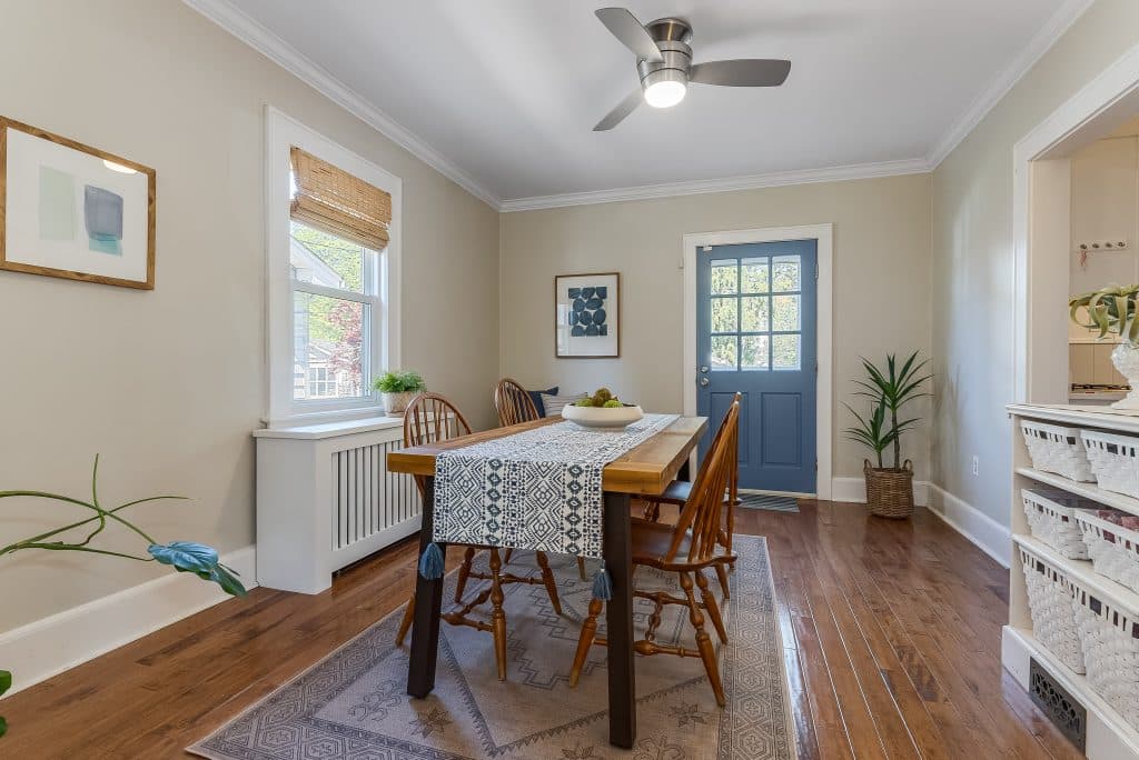 The welcoming front porch first caught our attention when we discovered this house, and it remains one of our favorite features. Living here has offered the perfect balance – a peaceful home in South Orange with the convenience of an easy Manhattan commute on the Midtown Direct train just a short walk away. Inside, there are spacious rooms with abundant natural light; we’ve always loved the way the afternoon sun illuminates the back of the housee. The beautiful stained glass windows, designed by the previous owners, add unique charm and character.